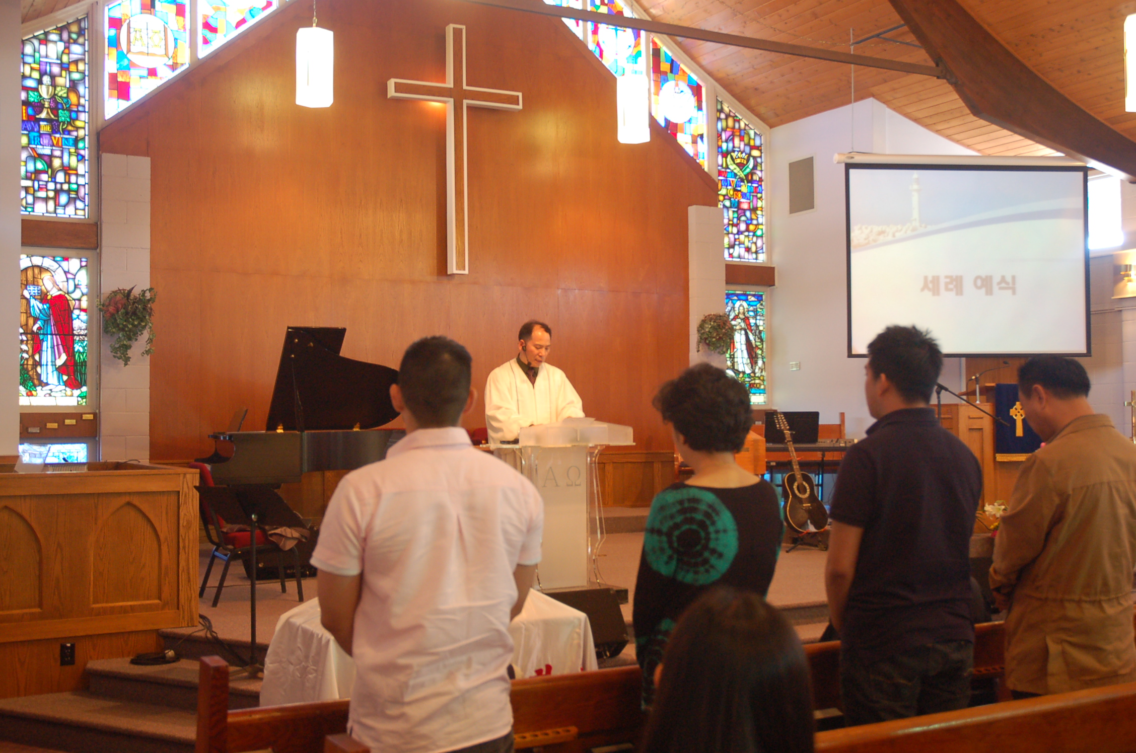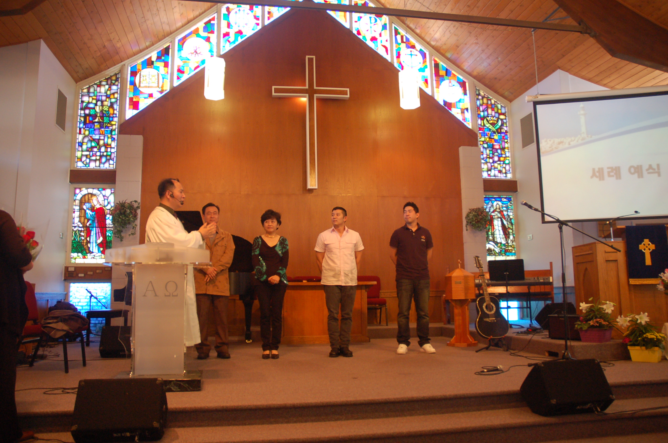 오늘 세례받으신 박태준, 김완구, 안창모 그리고 김아론 성도님
