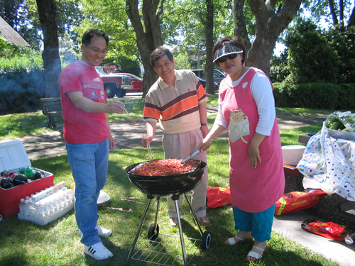 맛나게 고기를 굽는 분들. 목사님 이정화 집사님 그리고 선영이 아버님