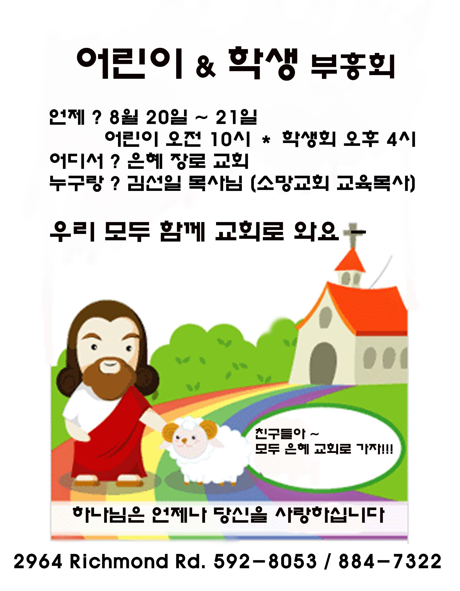 8월 20일~21일 어린이 및 학생 부홍회가 있습니다.